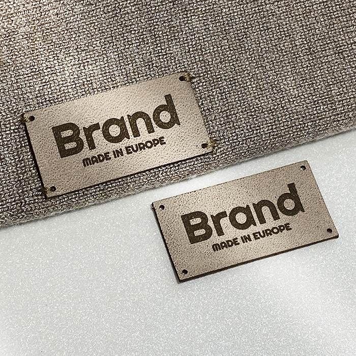 Brugerdefineret ægte læder etiket, lasergraveret og skåret i henhold til de viste dimensioner.