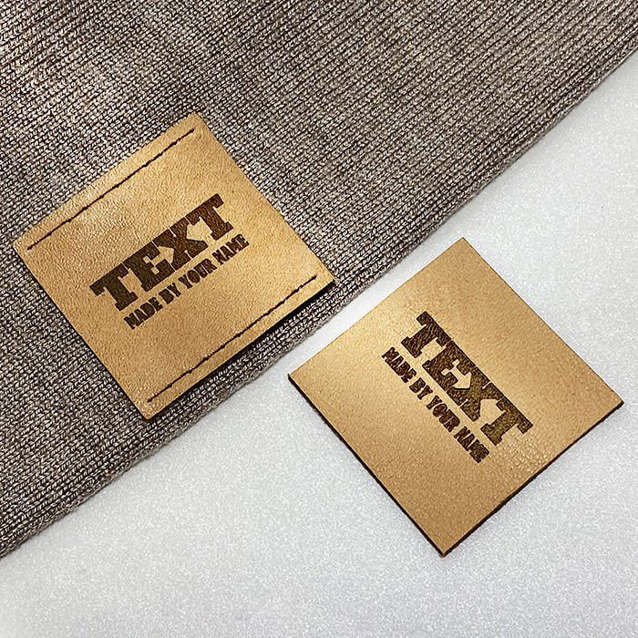 Brugerdefineret ægte læder etiket, lasergraveret og skåret i henhold til de viste dimensioner.
