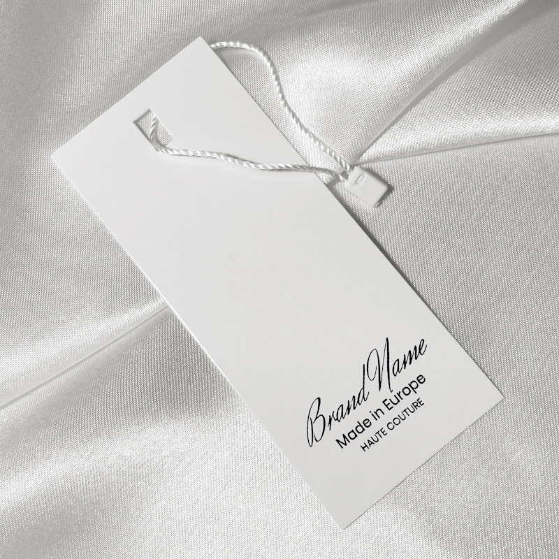 Brugerdefineret hænge etiketter HT-M102 til tekstilte produkter, som kvindetøj, mændetøj og tøktilbehør.
