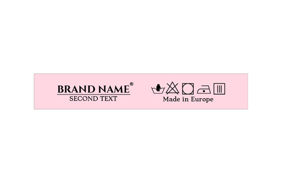 Vaskeinstruktionsetikette brugerdefineret med vaskesymboler og brand navn eller logo, egnet til hvilke som helst tekstile produkter, specielt tøj. Denne type af tekstile etiketter er lavet ved brug af de mest avanceret teknologier i det digitale printeområde inden for tekstil support. Etiketterne er printet på specielt satin af en termisk overførselsmetode, med en imponerende print kvalitet og høj vaske mostand.