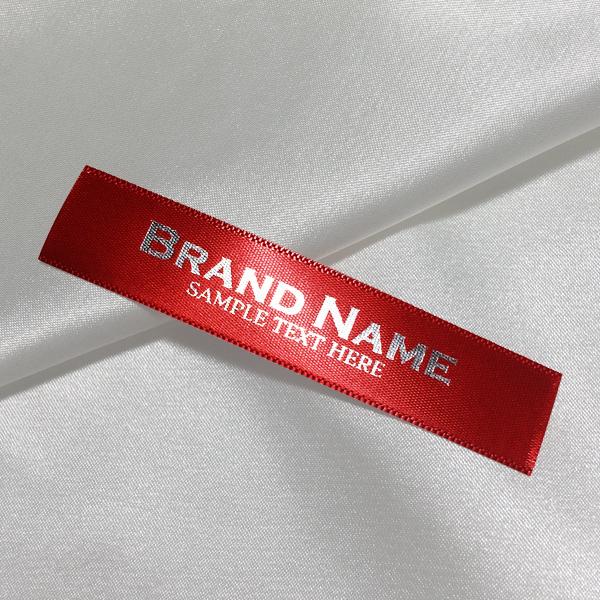 Brugerdefineret etikette TL-M136 printet på satin stof egnet til tøj, tøjtilbehør, og andre tekstile produkter.