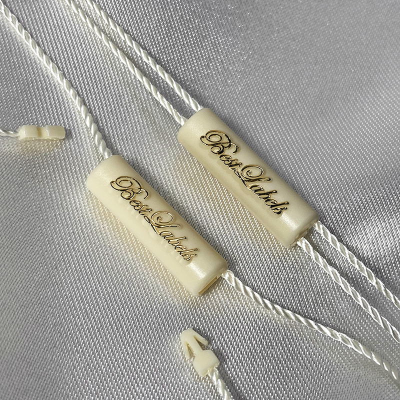 Plastik forseglingsmærke ST-M248 med et elegant design med en cylindrisk form brugerdefineret med brandets navn, ideel til produkter som kvinde og mandetøj, sko, smykker, ure, osv. Denne type af forseglingsmærke er lavet af materialer i høj kvalitet ved brug af de mest avanceret teknologier i feltet.