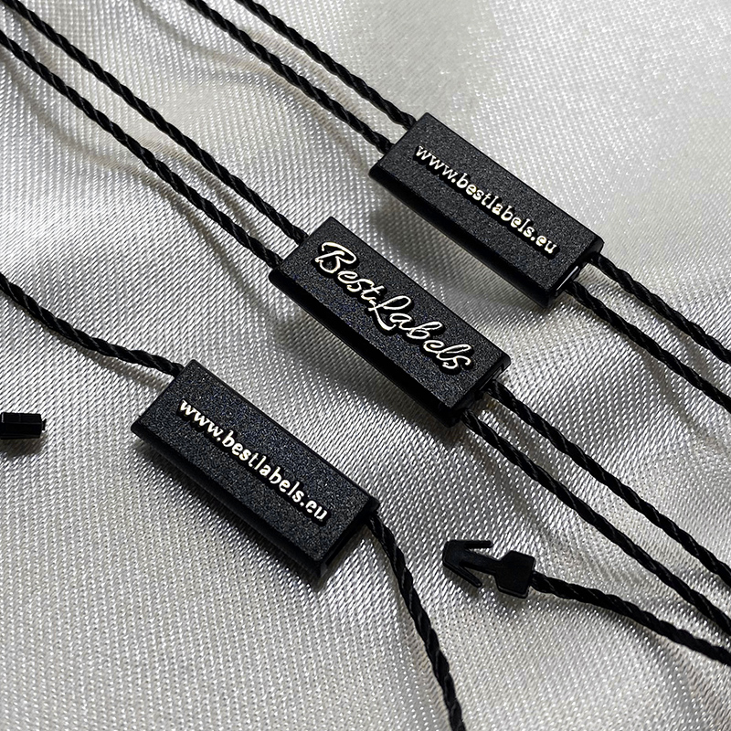 Plastik forseglingsmærke ST-M134 med en simple rektangulær form, brugerderfineret med en tekst, brand navn, trademark, hjemmeside, osv., og et logo/emblem, egnet til hvilken som helst type produkt I det tekstile felt, tøj, sko, tasker. Denne type af forseglingsmærke er lavet af materialer i høj kvalitet ved brug af de mest avanceret teknologier i feltet.