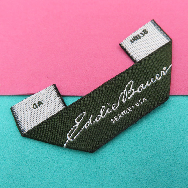 Brugerdefineret vævet etikette WL-M33 digitalt broderet på et stof egnet til tøj, tøjtilbehør.